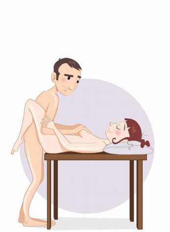 这需要你家里有一张高度适宜的桌子,女人躺在上面,头部垫着枕头,而男子则站在桌子的边缘,直接挺入女性的阴道。非常的省体力,而此时解放了的双手可以用来抚摸女性的胸脯,引起女人的兴奋哦。这种垂直站立式的姿势非常赞。